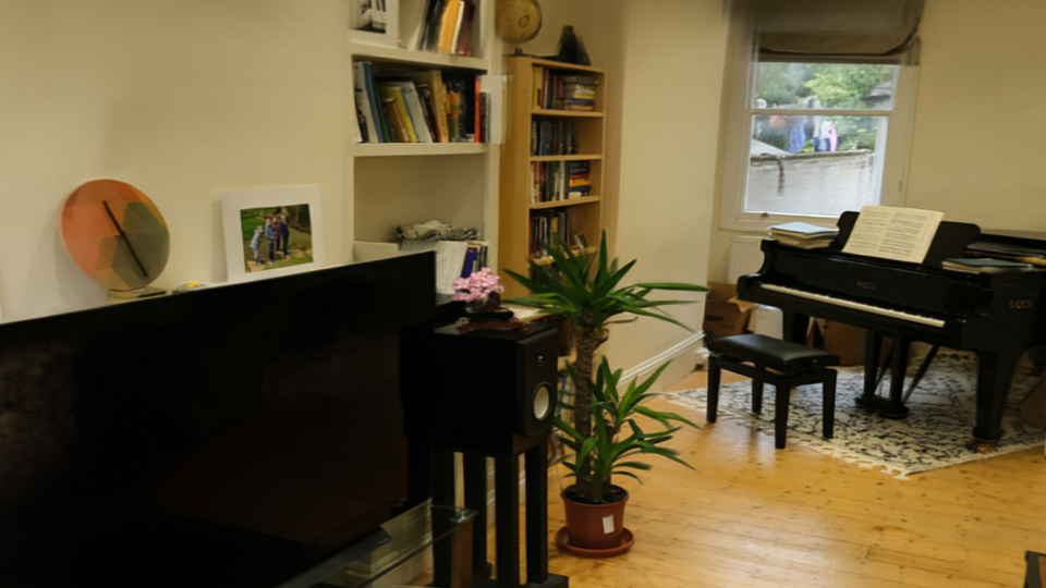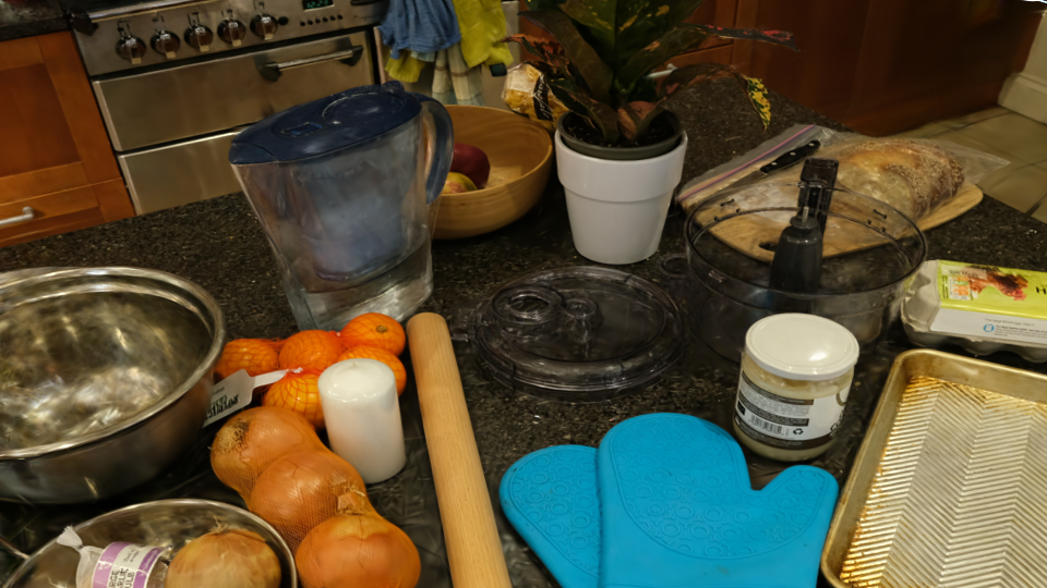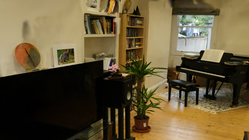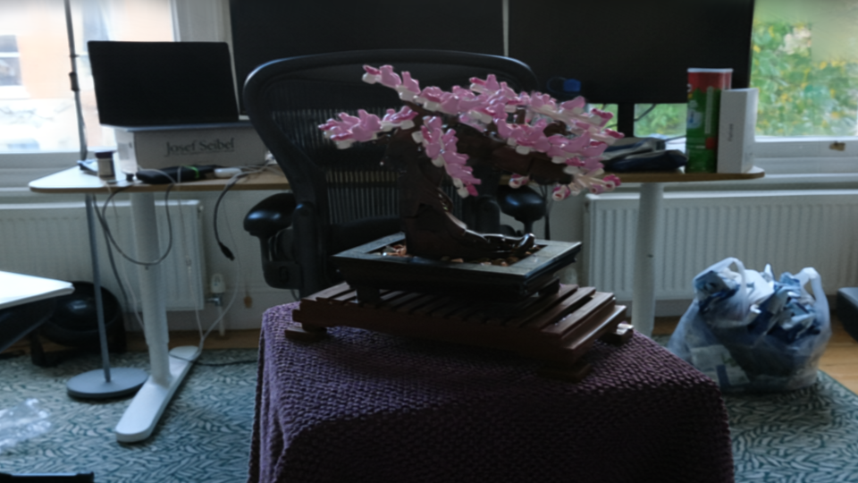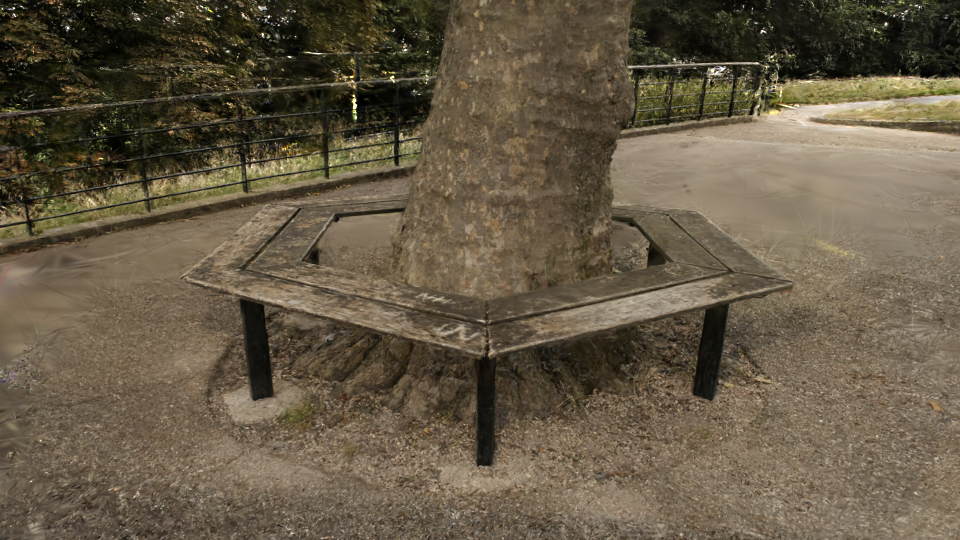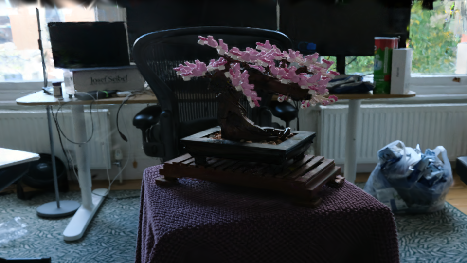 Here we show rendered views from our full model, trained on DL3DV and evaluated zero-shot on Mip-NeRF360, against 3DGS which is optimized per scene for ~13 minutes.